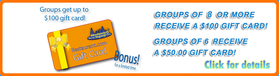 For a great way to see Chicago’s top attractions, try a Chicago Segway tour! Sightseeing on a Segway is fun, unique, and exhilarating. Segways are safe and very easy to learn. If you can stand, you can ride! These self-balancing machines do the work for you. Explore Chicago by day or night with our friendly tour guides. You’ll glide effortlessly as you enjoy views of Chicago’s beautiful lakefront, parks, and skyline. Capture your memories with great photographs on our Chicago Segway sightseeing tours. Options include our Museum and Lakefront Tour, Art & Architecture Tour, Fireworks Tour, Gangster Tour, Haunted Tour, and private tours. Join us on one of our unique, picturesque tours of Chicago. You’ll Absolutely love it!